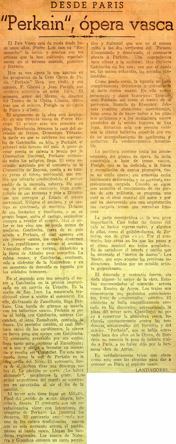 - Opera de Poueigh con libreto de Gheusi basado en la leyenda de Harispe. Reseña y extracto argumento.