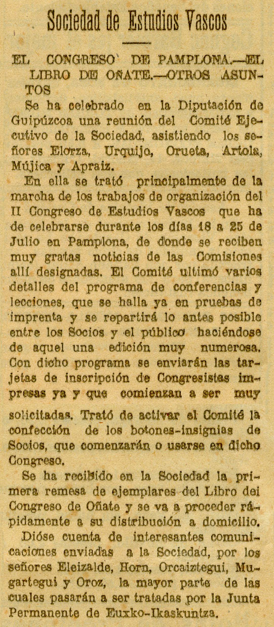 Sociedad de Estudios Vacos. El Congreso de Pamplona.