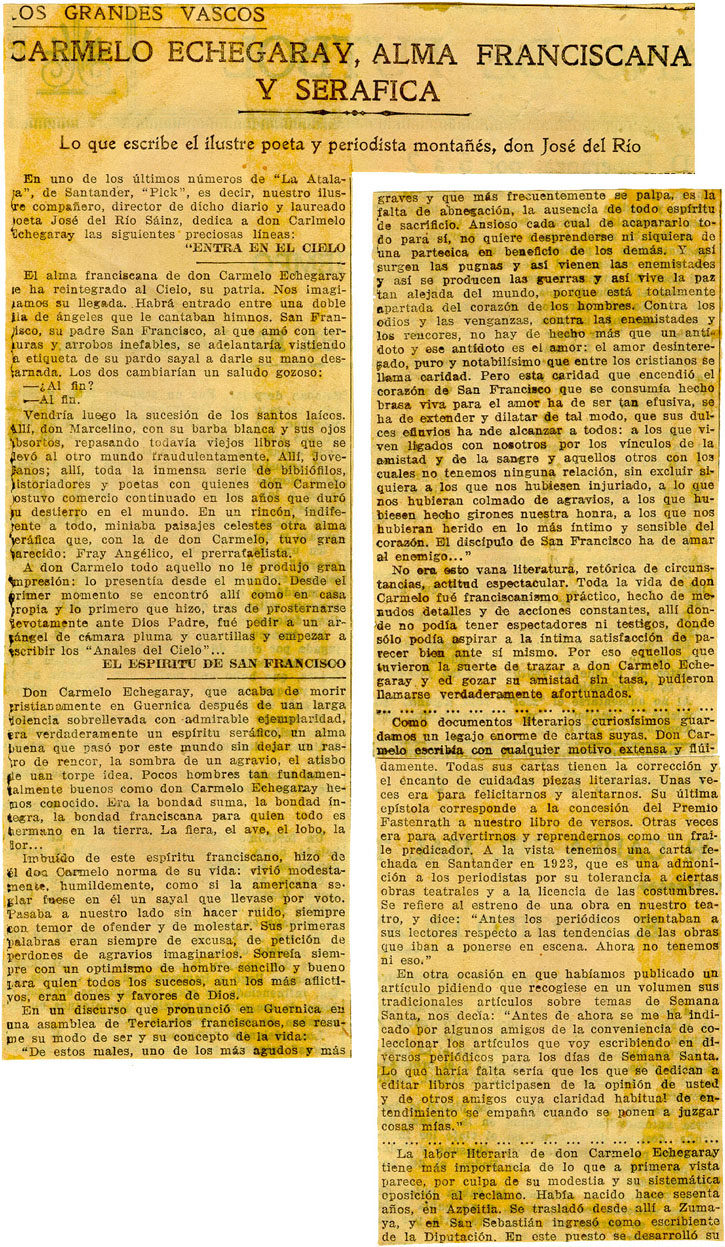 - Los grandes vascos. Carmelo Echegaray, alma franciscana y seráfica.