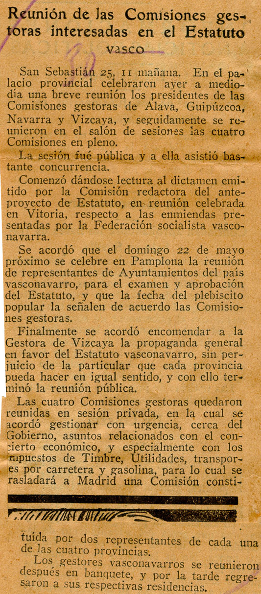 - Reunión de las Comisiones gestoras interesadas en el Estatuto Vasco.
