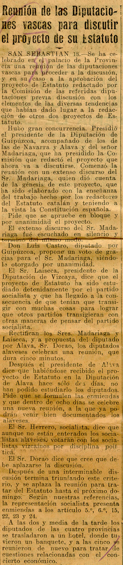 - Reunión de las Diputaciones vascas para discutir su proyecto de Estatuto.