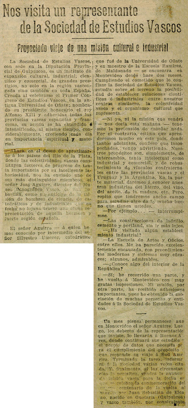 - Breve entrevista con Aguirre. Sobre las relaciones a establecer entre Eusko Ikaskuntza, las comunidades vascas y las instituciones culturales y científicas de Argentina y Uruguay.