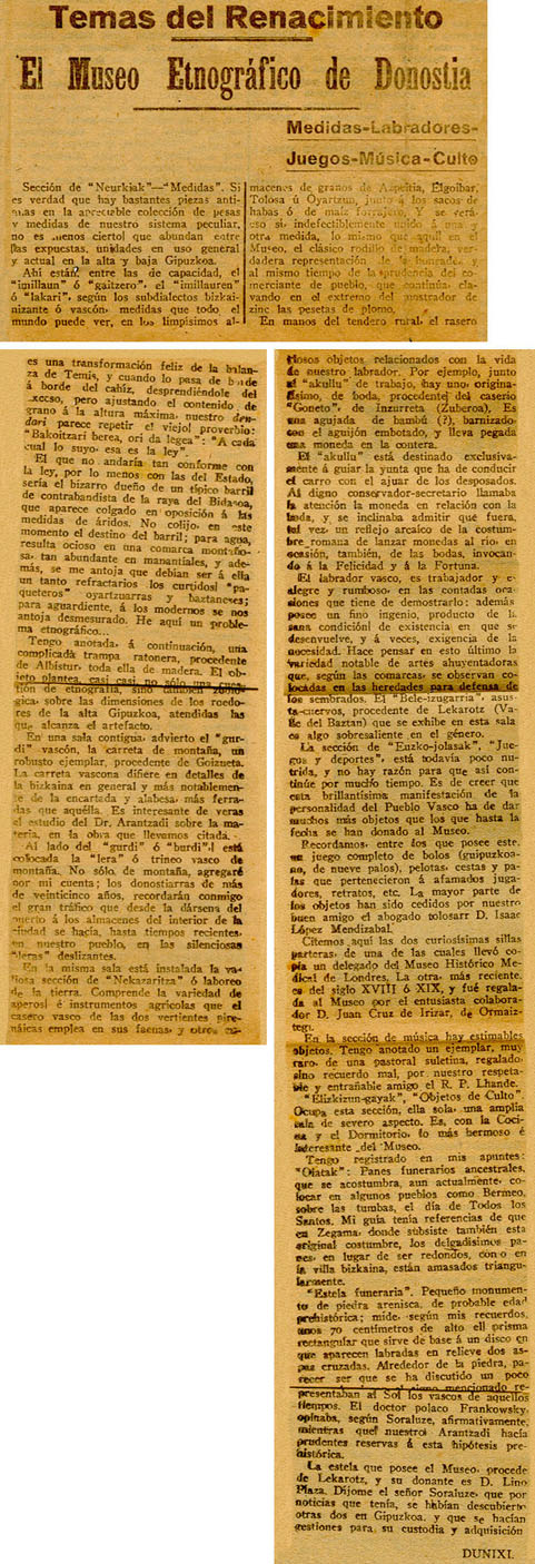 - Temas del Renacimiento. El Museo Etnográfico de Donostia. Medidas. Labradores. Juegos. Música. Cultos.