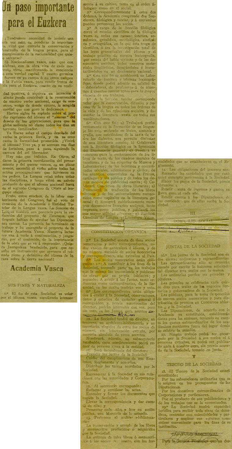 - Proyecto de Academia Vasca redactado por la ponencia encargada de ello por la Sección de Lengua del Congreso de Oñati.