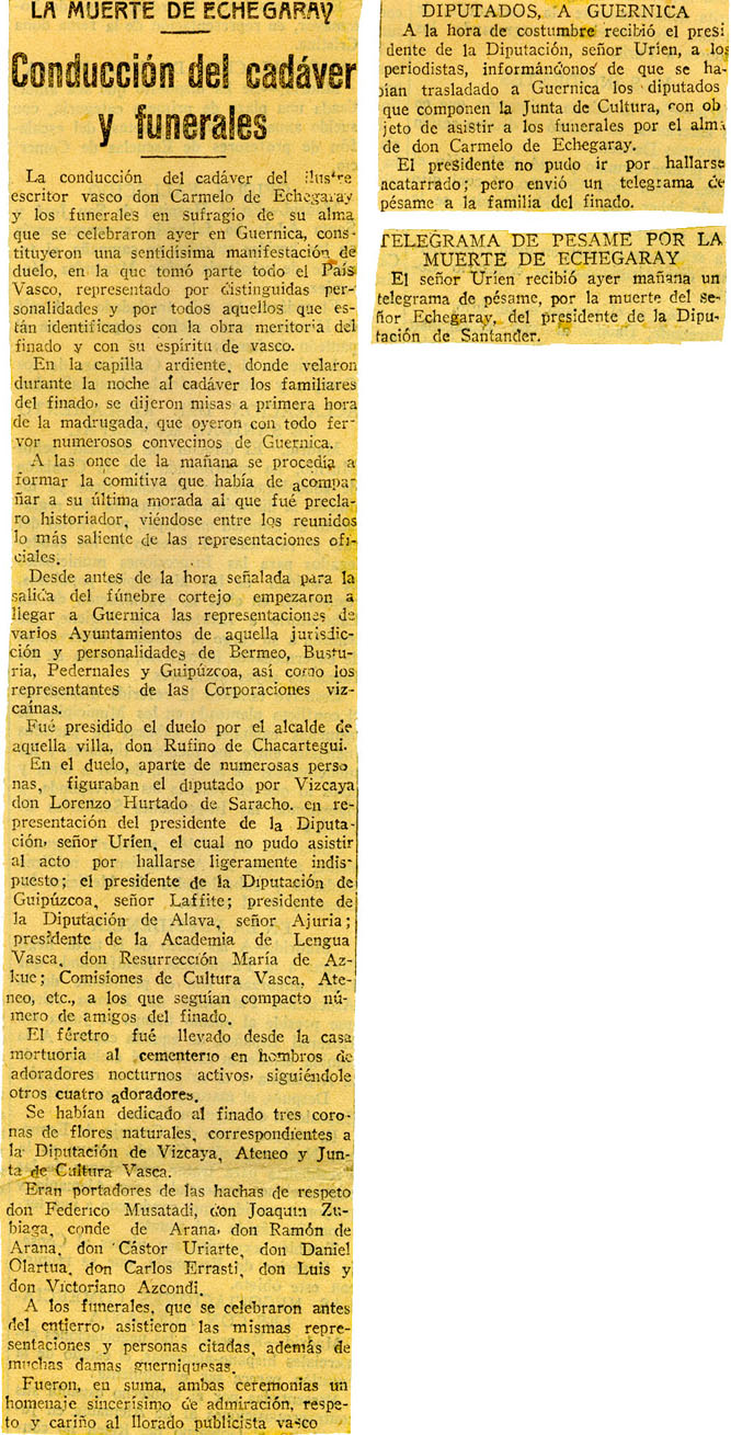 - La muerte de Echegaray. Conducción del cadáver y funerales.
