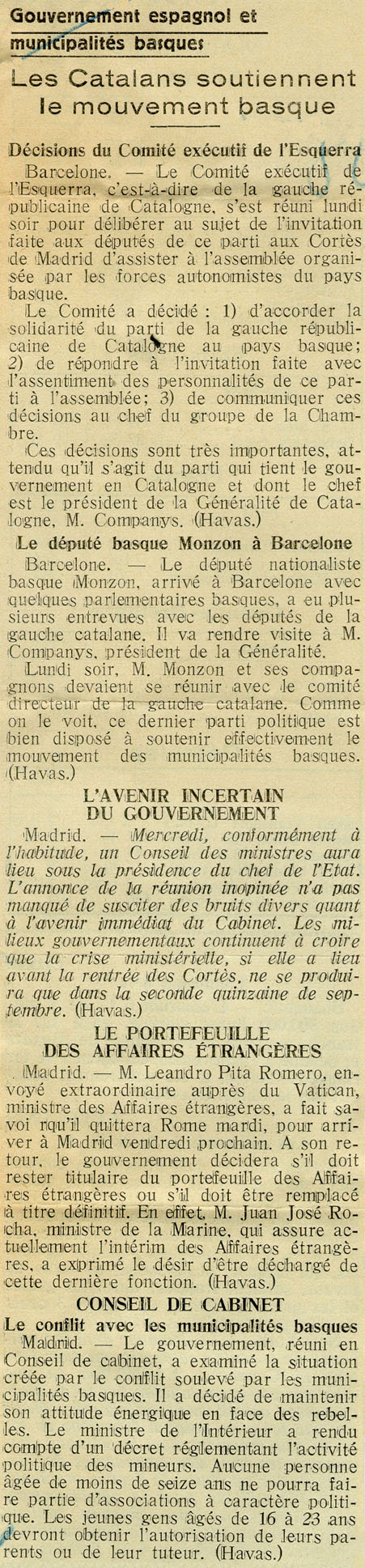 - Les Catalans soutiennent le mouvement basque.