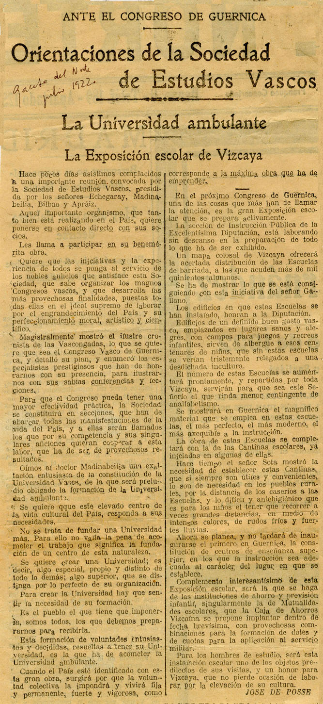 - Ante el Congreso de Guernica. Orientaciones de la Sociedad de Estudios Vascos.