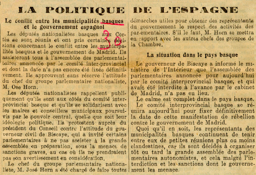 - La politique de Espagne. Le conflit entre les municipalités basques et le gouvernement espagnol.