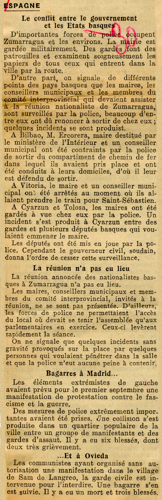 - Le conflit entre le gouvernement et les Etats basques.