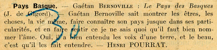 - Breve reseña de "Le Pays des Basques" de Bernoville.