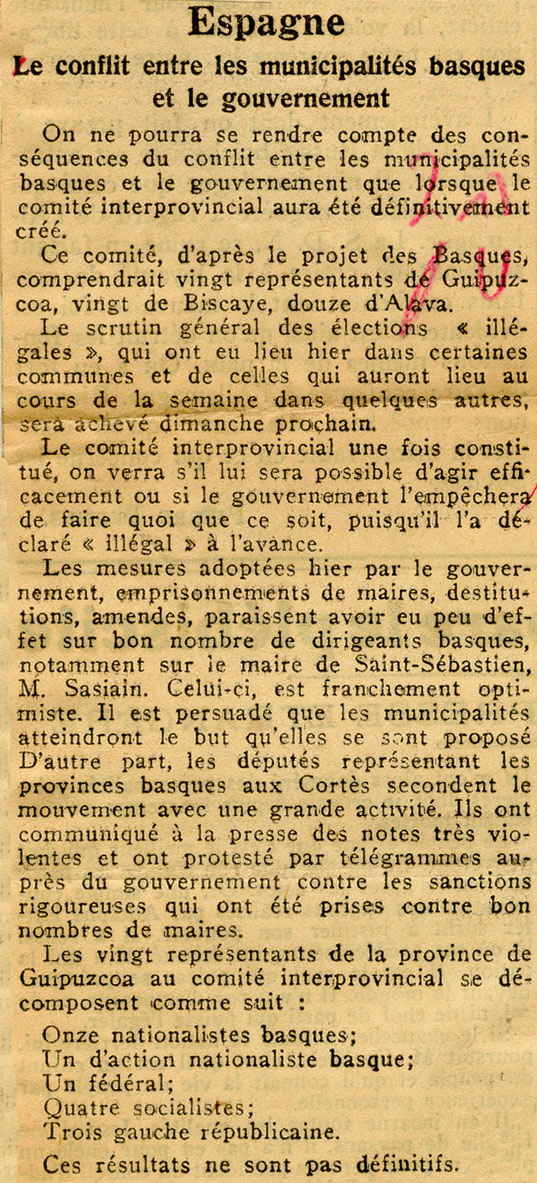 - Conflit entre les municipalités basques et le gouvernement.