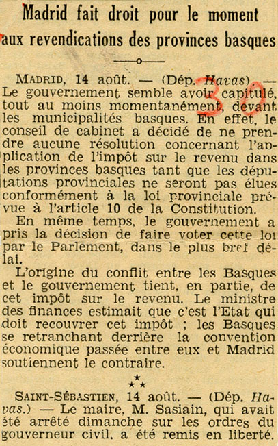 - Madrid fait droit pour le moment aux revendications des provinces basques.