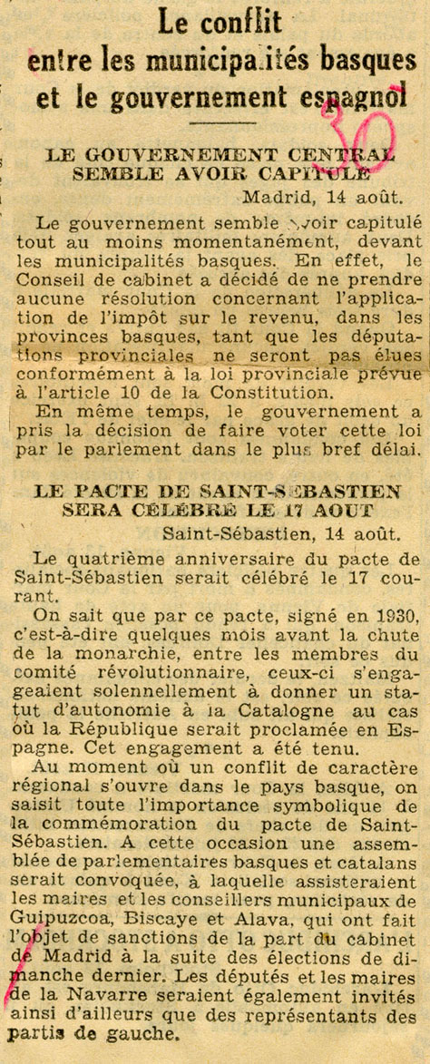 - Le conflit entre les municipalités basques et le gouvernement espagnol.