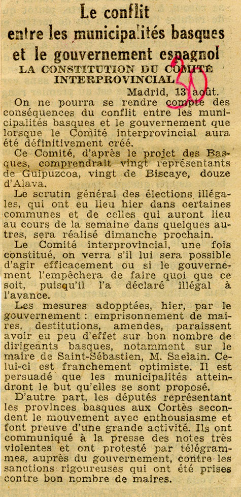 - Le conflit entre les municipalités basques et le gouvernement espagnol.