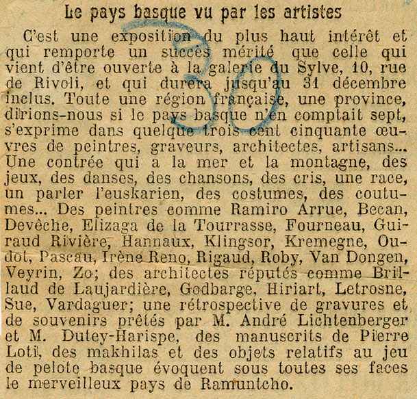 Recorte de agencia [Argus Suisse et International de la Presse, S.A./23, rue du Rhône-Genève]