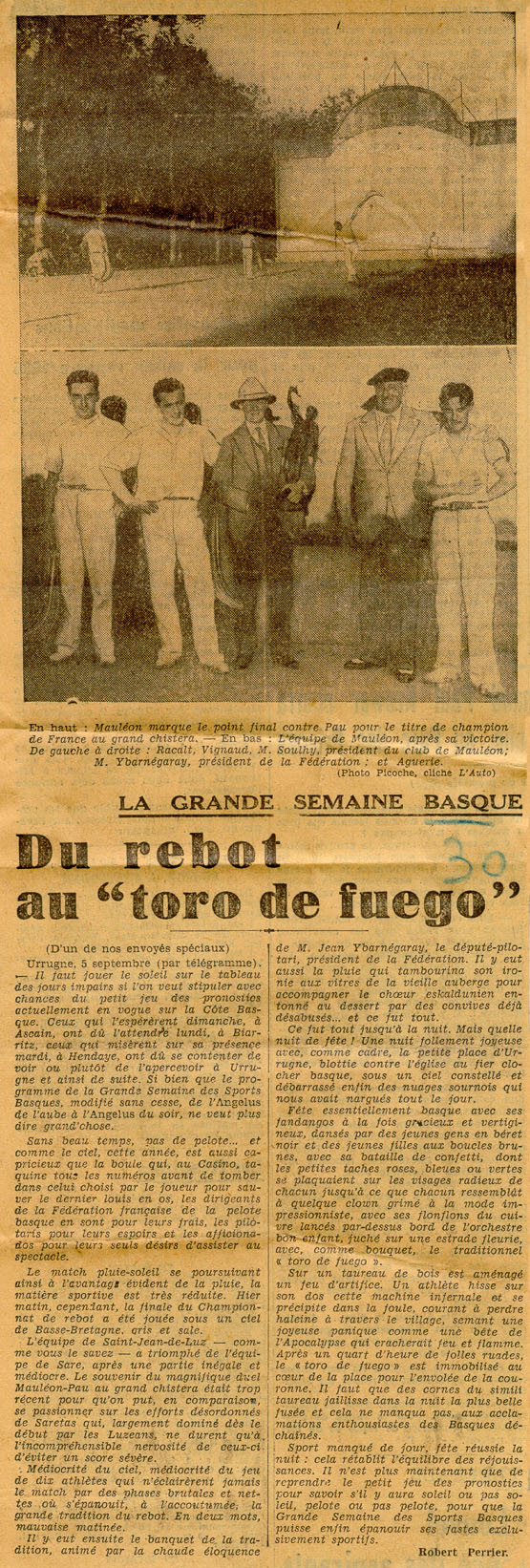 - La grande semaine basque. Du rebot au "toro de fuego".
