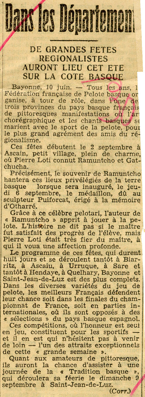 - De grandes fêtes régionalistes auront lieu cet ete sur la Côte Basque.