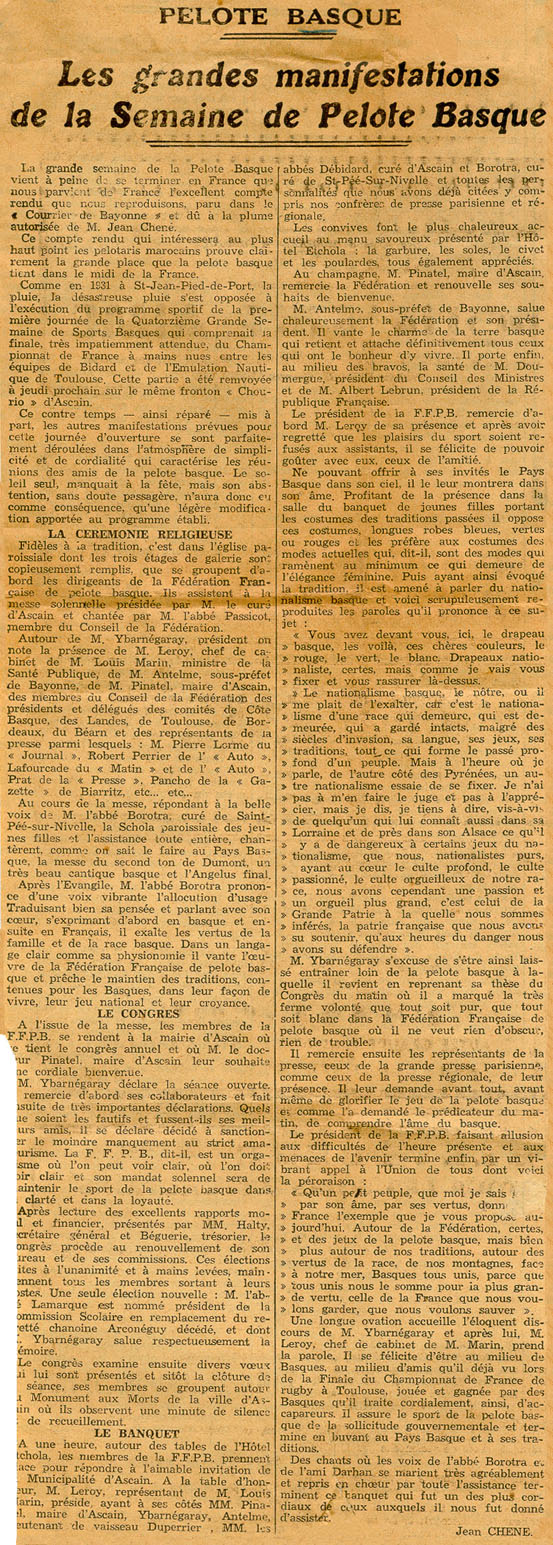 - Pelote basque. Les garndes manifestations de la Semaine de pelote basque.