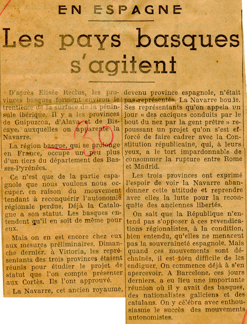 - Recorte de agencia [Argus Suisse et International de la Presse, S.A./23, rue du Rhône-Genève]