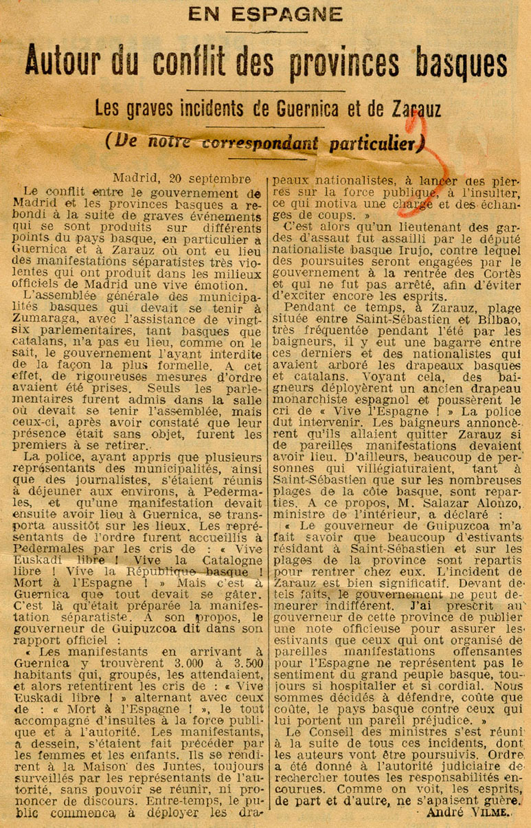 - Autour du conflit des provinces basques.