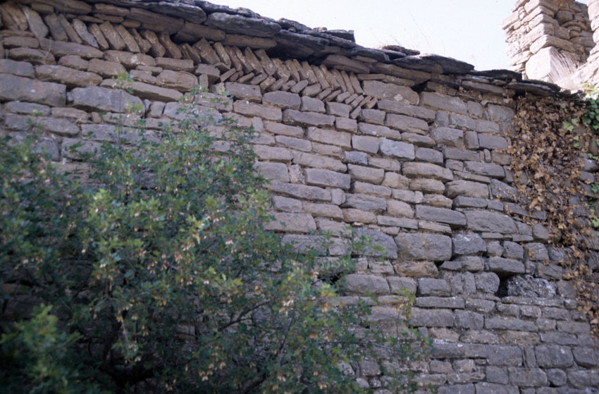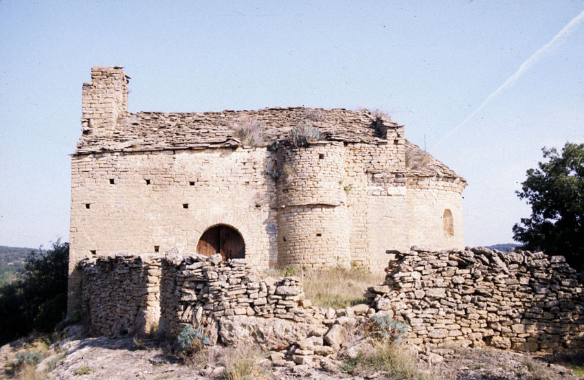Detalle de una fachada y del ábside de la Iglesia de Sant Romá de Comiols (Lérida)