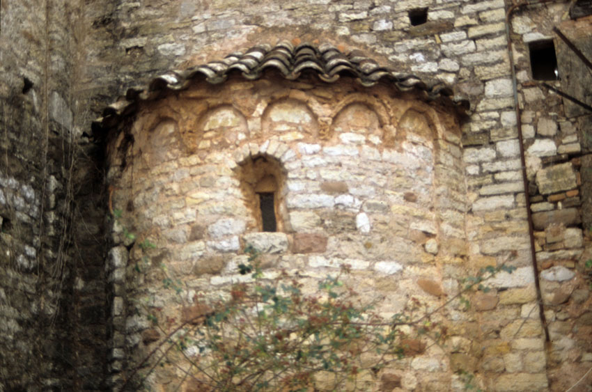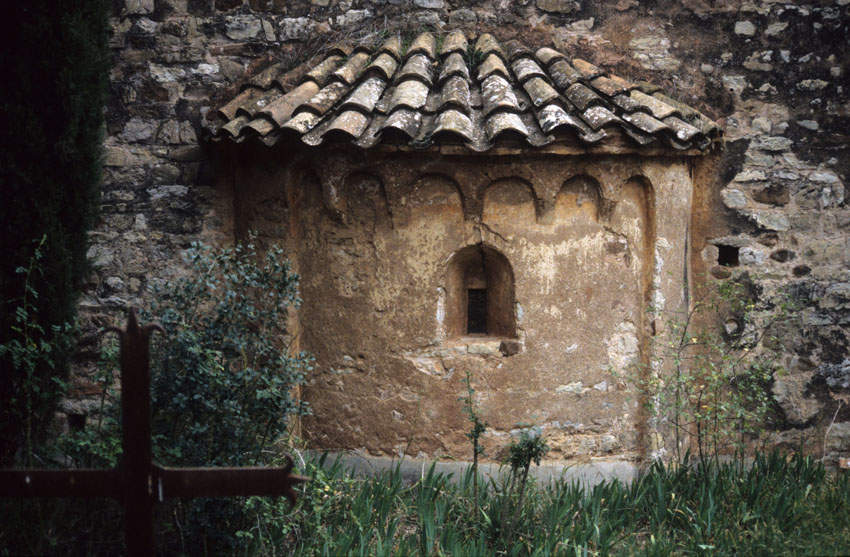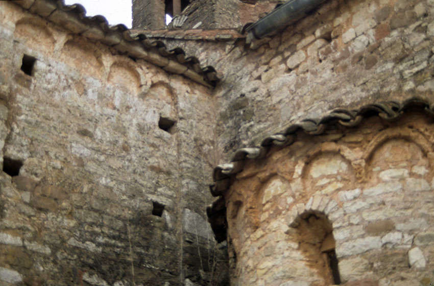 Detalle de un ábside de la Iglesia de Sant Sebastià de Montmajor (Barcelona)