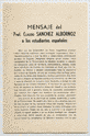 Mensaje de Claudio Sánchez Albornoz a los estudiantes españoles, en el que les comunica su apoyo a las actividades organizadas en defensa de la democracia.
