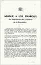 Mensaje a los españoles del Presidente del Gobierno de la República en el exilio, Claudio Sánchez Albornoz, acerca de la sucesión del régimen franquista. Hay otro ejemplar del documento en Caja 3, Expediente 19, Folios 24-26, que adjunta dos copias de una alocución del mismo autor a raíz del aniversario de la proclamación de la Segunda República.