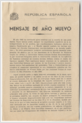 Mensaje de Año Nuevo emitido por el Presidente del Gobierno de la República en el exilio, Félix Gordón Ordás, en el que critica la tolerancia de las grandes potencias internacionales ante el Régimen de Franco.