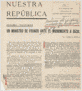 Ejemplar del nº 1 de "Nuestra República", boletín editado por el Ateneo Republicano Español de México. El número está dedicado íntegramente a un artículo firmado por José Esplá, bajo el título "Un Ministro de Franco ante el monumento a Rizal".