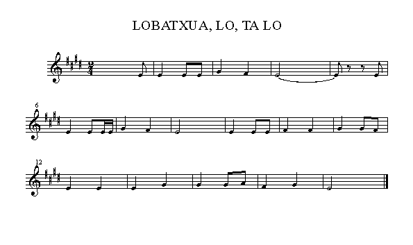 Lobatxua, lo, ta lo;Orain zeuk eta neuk gero.