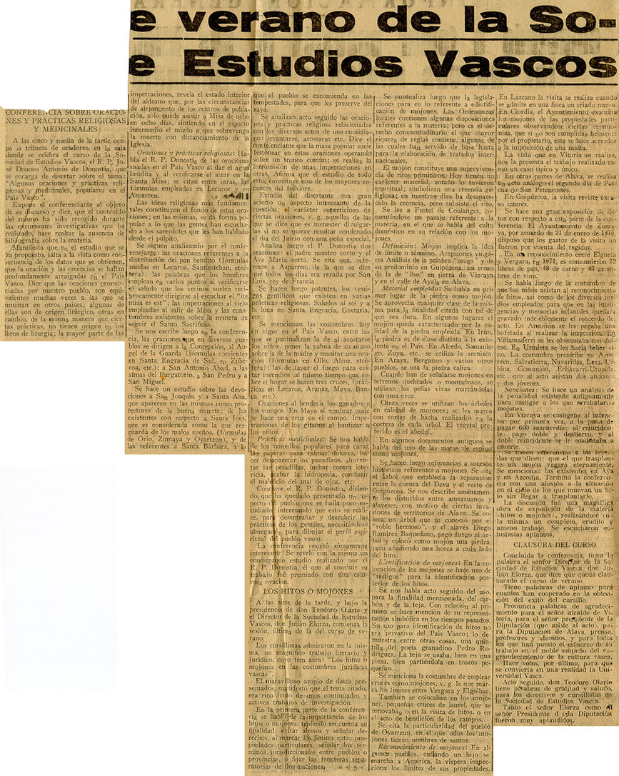 - Reseña conferencias de Donostia sobre "Oraciones y Prácticas religiosas y medicinales" y de Elorza sobre "Los hitos y mojones en las costumbres jurídicas vascas".