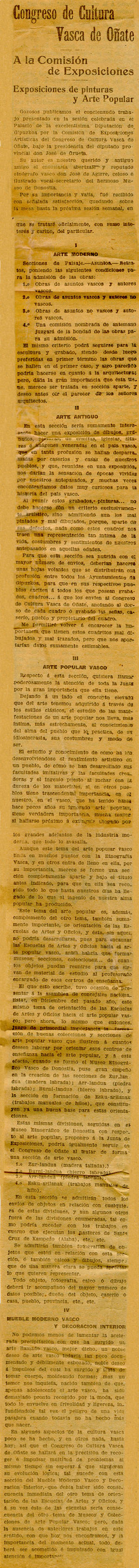 - Congreso de Cultura Vasca de Oñate. A la Comisión de Exposiciones. Exposiciones de pintura y arte popular.