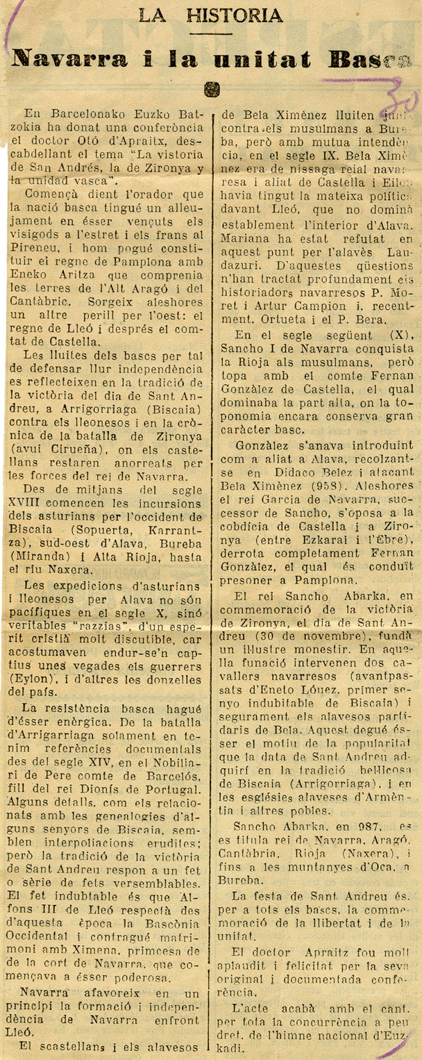 - Conferencia de Apraiz en el Batzoki barcelonés.