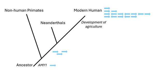 Figure 6. Amylase (AMY1) gene duplication through evolution