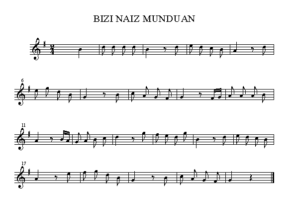 1. Bizi naiz munduan juan dan aspaldian,Beti tristezian, penak bihotzian,