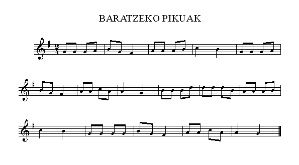 Baratzeko pikuak hiru xerto ditu.Mutil andrekariak oñak arin ditu.