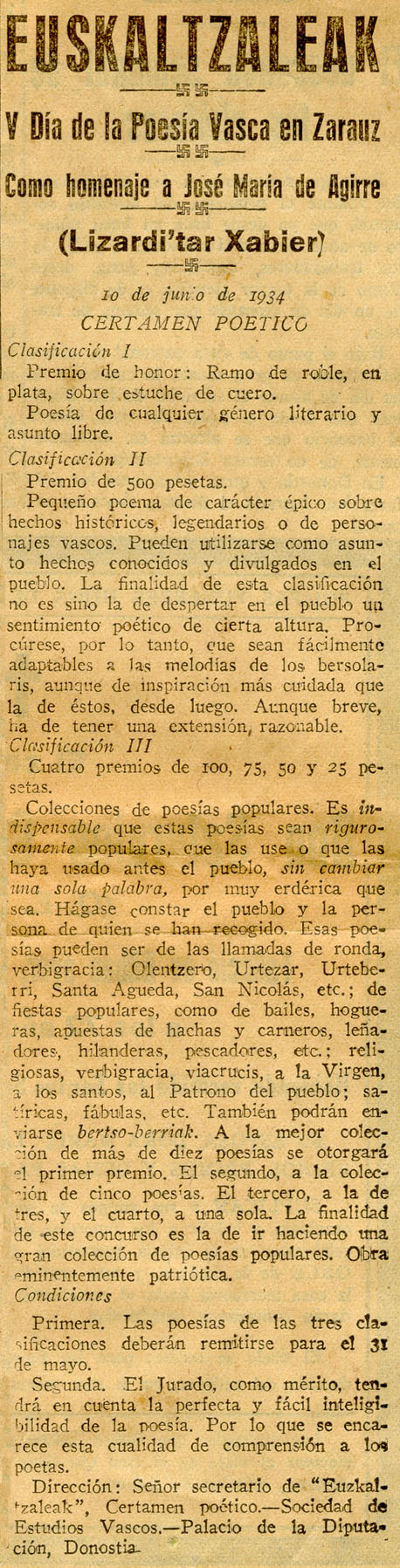 - Convocatoria del V Día de la Poesía Vasca [10
