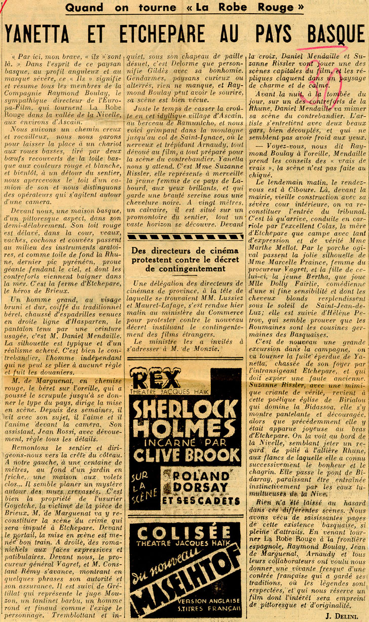- Quand on tourne "La Robe Rouge". Yanetta et etchepare au pays basque.