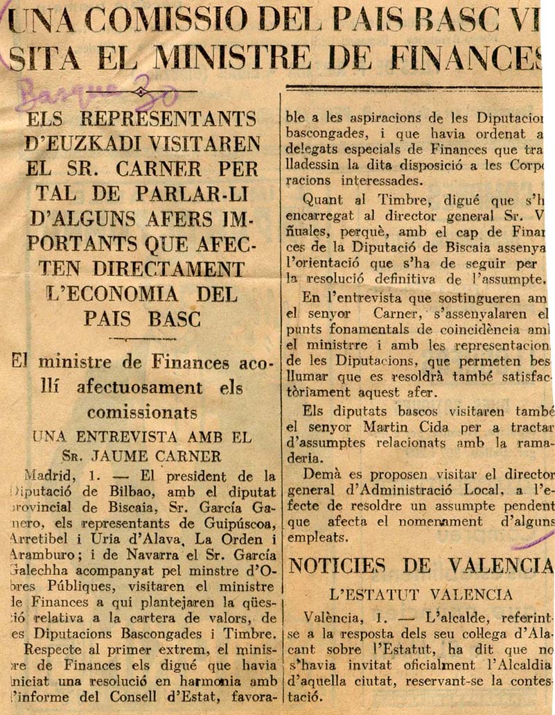 - Una comissio del Pais Basc visita el Ministre de Finances.