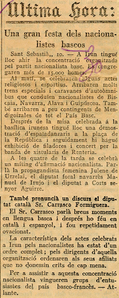 - Recorte de agencia [Argus Suisse et International de la Presse, S.A./23, rue du Rhône-Genève]