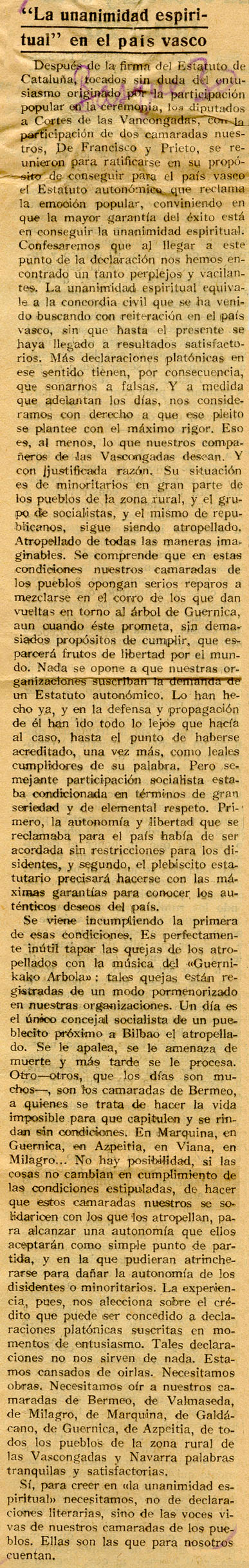 - "La unanimidad espiritual" en el país vasco.