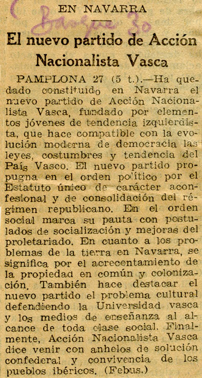 - En Navarra. El nuevo partido de Acción Nacionalista Vasca.
