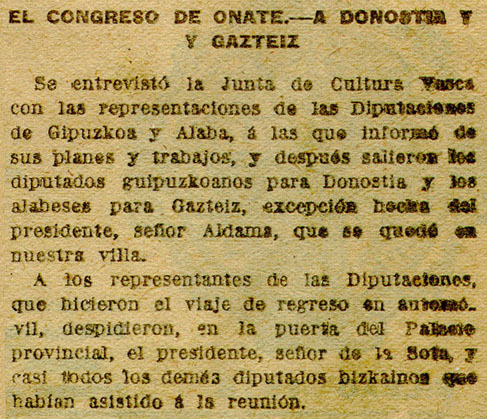 - El Congreso de Oñate. A Donostia y Gazteiz.
