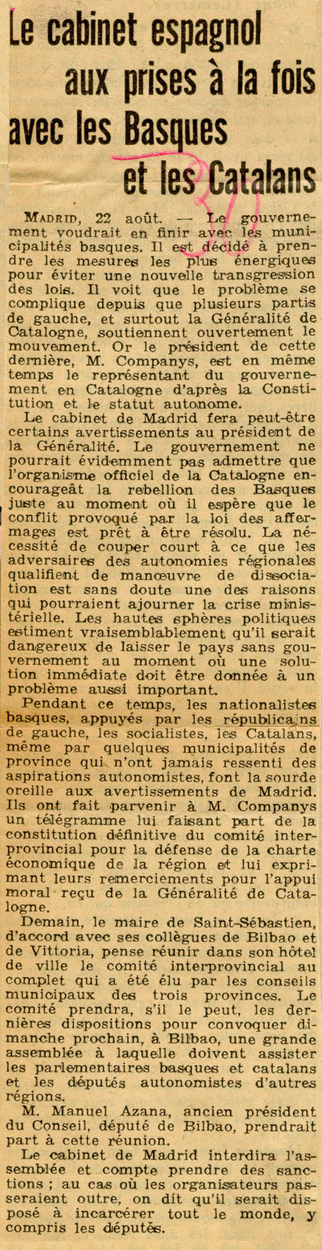 - Le cabinet espagnol aux prises à la fois avec les Basques et les Catalans.