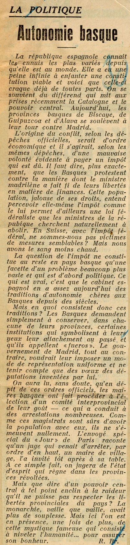 - Recorte de agencia [Argus Suisse et International de la Presse, S.A./23, rue du Rhône-Genève]