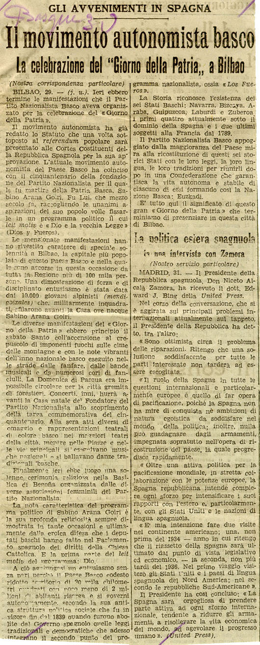 - Il movimento autonomista basco. La celebrazione del "Giorno della Patria" a Bilbao.
