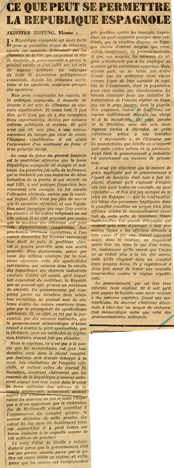 - Del "Arbeiter Zeitung". Recorte de agencia [Argus Suisse et International de la Presse, S.A./23, rue du Rhône-Genève]
