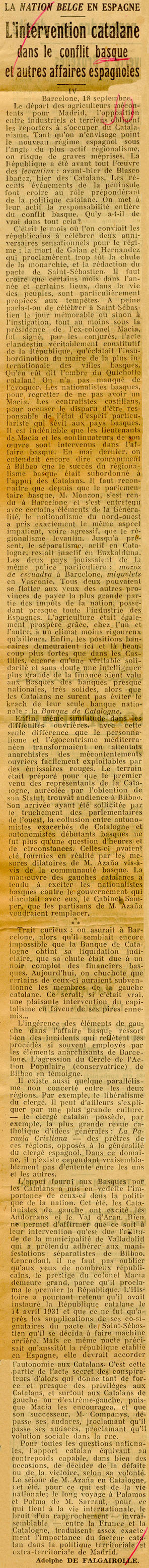 - L´intervention catalane dans le conflit basque et autres affaires espagnoles.