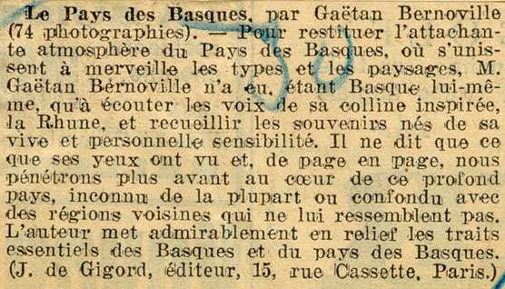 - Breve reseña de "Le Pays des Basques" de Bernoville.